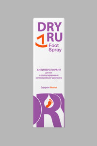 Меры предосторожности: Средство необходимо наносить на сухую кожу. Не наносите на раздраженную или поврежденную кожу. При возникновении жжения или зуда, смойте средство водой и не наносите раньше, чем через 24 часа. He используйте DRY RU Foot Spray, если появилось раздражение. DRY RU Foot Spray предназначен только для наружного применения. Хранить в недоступном для детей месте. Для того, чтобы средство не оставляло следов на одежде, после нанесения необходимо убедиться, что оно полностью высохло. После этого можно одеваться.